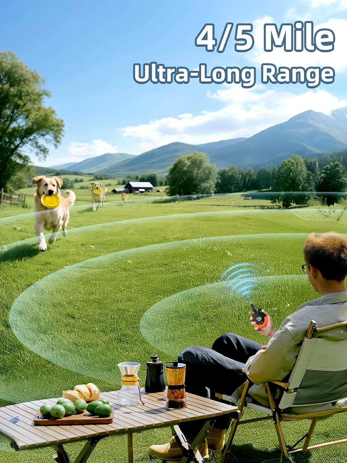- 【Ultra-Wide 4/5 Mile Range for Maximum Freedom】This dog training collar with remote provides a 4/5 mile(approximately 4,300 ft) stable range in open areas, ideal for parks, hikes, and open spaces. Whether you're working on recall or off-leash commands, enjoy reliable control with zero signal dropouts—perfect for outdoor training sessions.